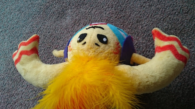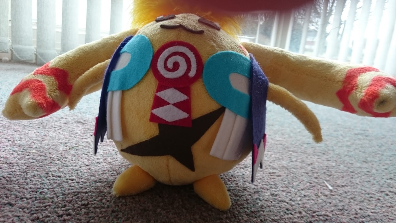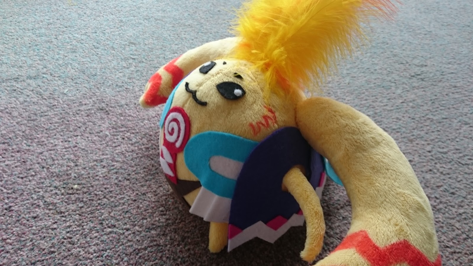 Two Riki plushies are on the go now and one is complete. While waiting for the feathers to turn up for the comb of big Riki I realised I had enough time and material to complete a smaller Riki too. Again this one was made using the official Riki plush template from Xenoblade: The Secret Files – Monado Archives that I translated from Japanese (well, Google translated it. I skilfully pointed my camera at things).